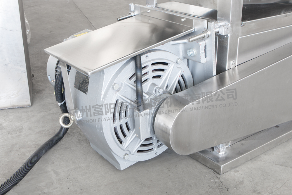 采用不銹鋼鏈條連續輸送物料,操作簡單,生產效率高;該機具有運轉平穩、噪音低、維修方便等特點,符合GMP要求。